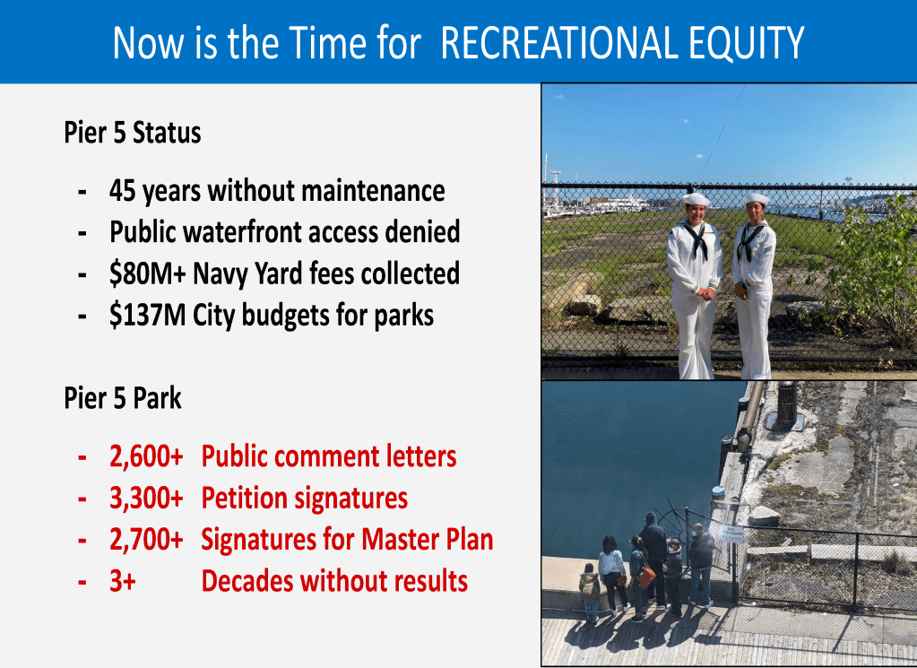Share your thoughts, questions or concerns about the privatization of Pier 5 and local parks with community members, stakeholders and municipal authorities.