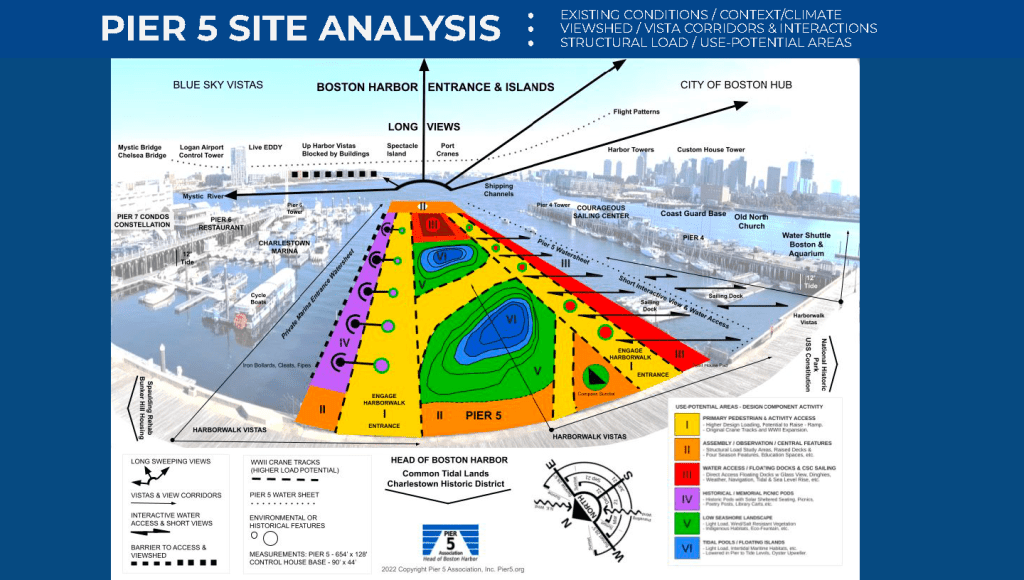 Two proposals to privately develop Pier 5 in the Charlestown Navy Yard are currently under review. Pier 5 belongs to the public.